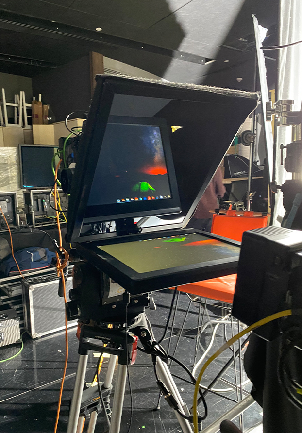 Dış Mekan Prompter, topluluk önündeki konuşma etkinliklerinde önemli bir rol oynar ve konuşmaların, senaryoların veya sunumların mükemmel bir şekilde iletilmesini sağlayan gizli bir kılavuz görevi görür. Bu cihaz, bir operatör tarafından yönetilir.